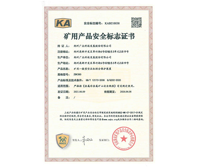 上一條: 礦用產(chǎn)品安全標(biāo)志證書(shū)二